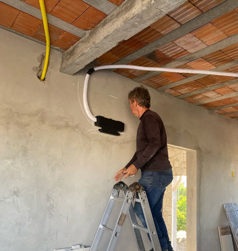 - Instalação de tubos de cobre e fios de comunicação entre evaporadora e condensadora.